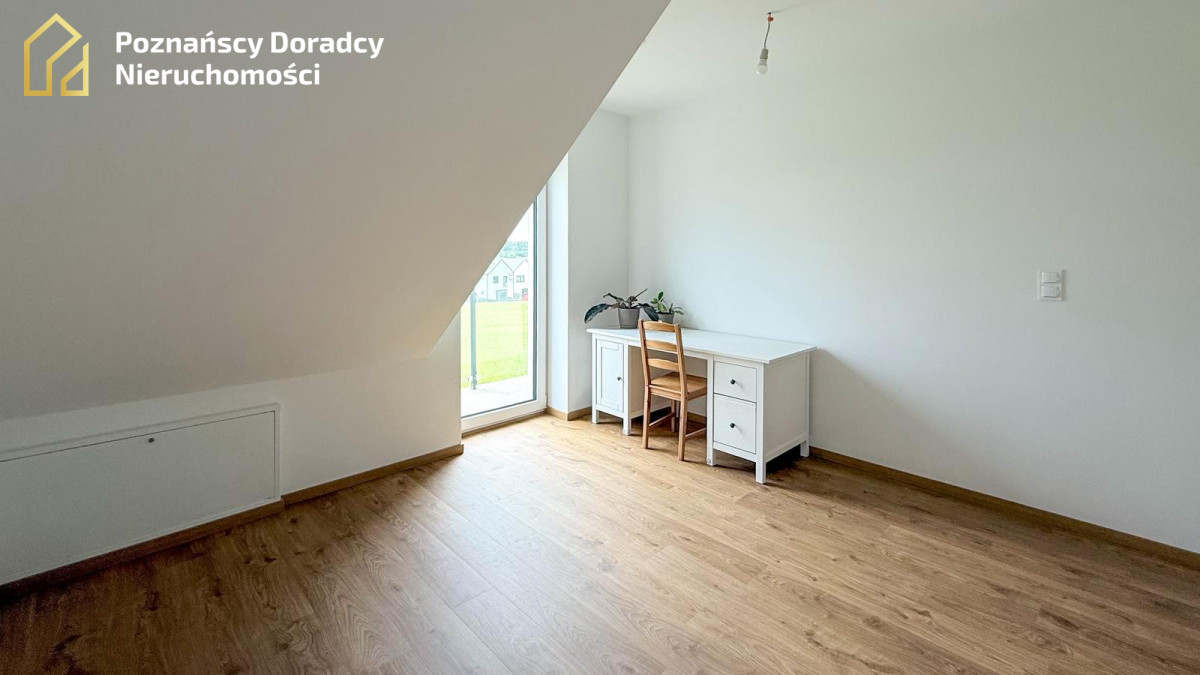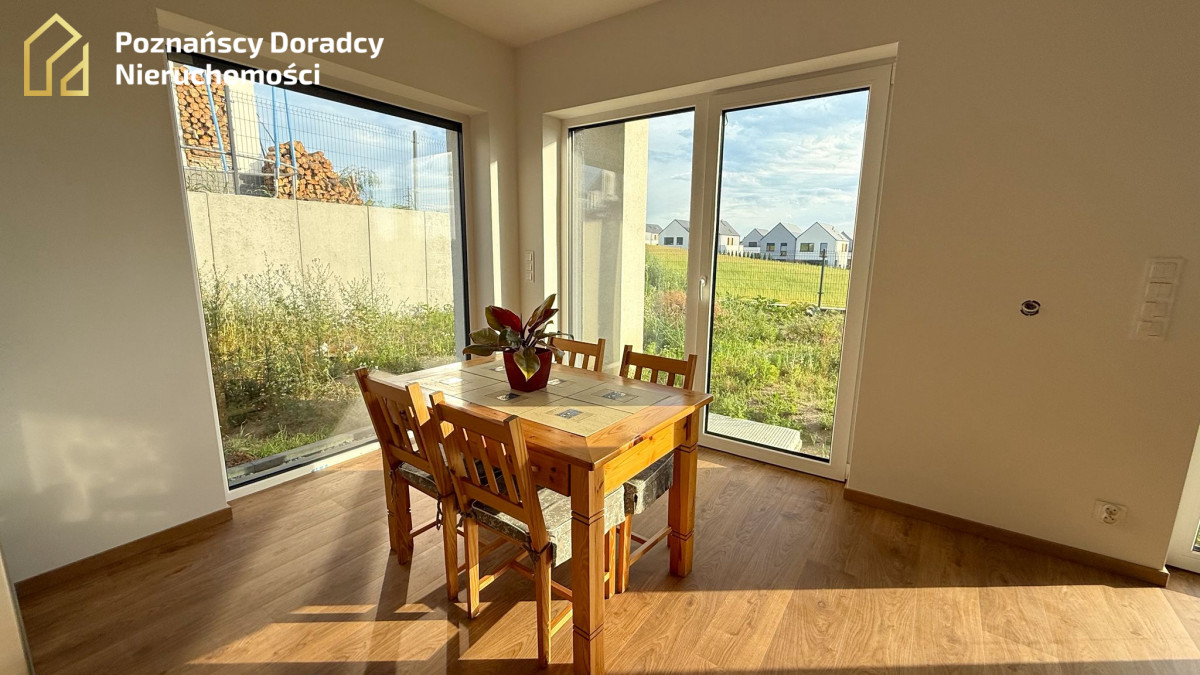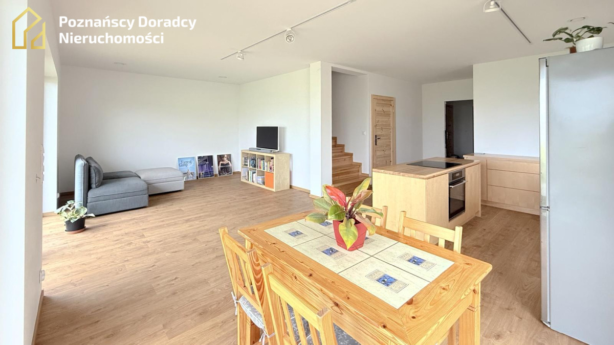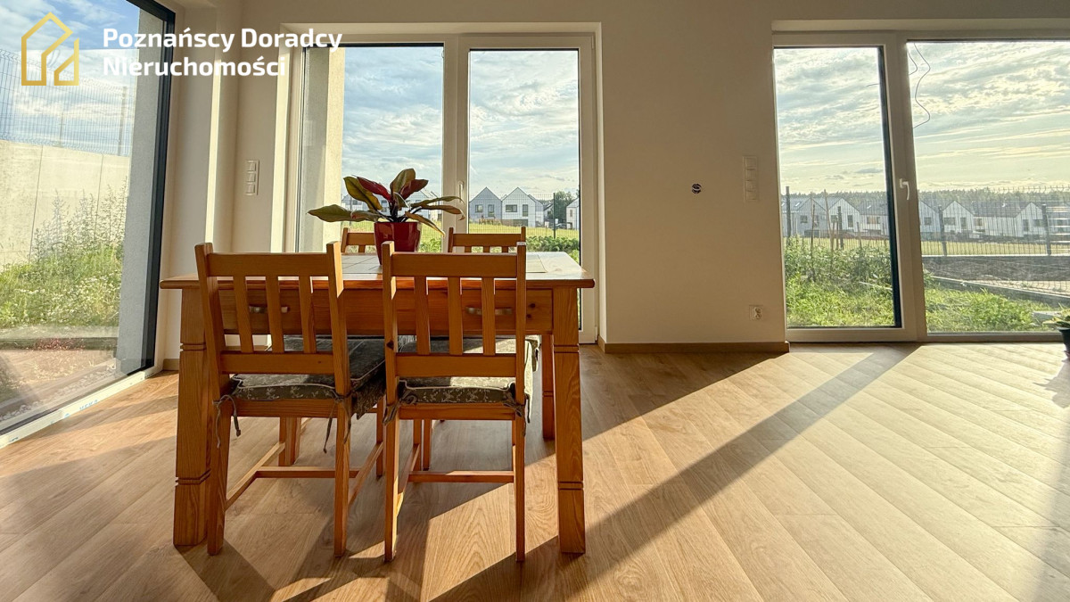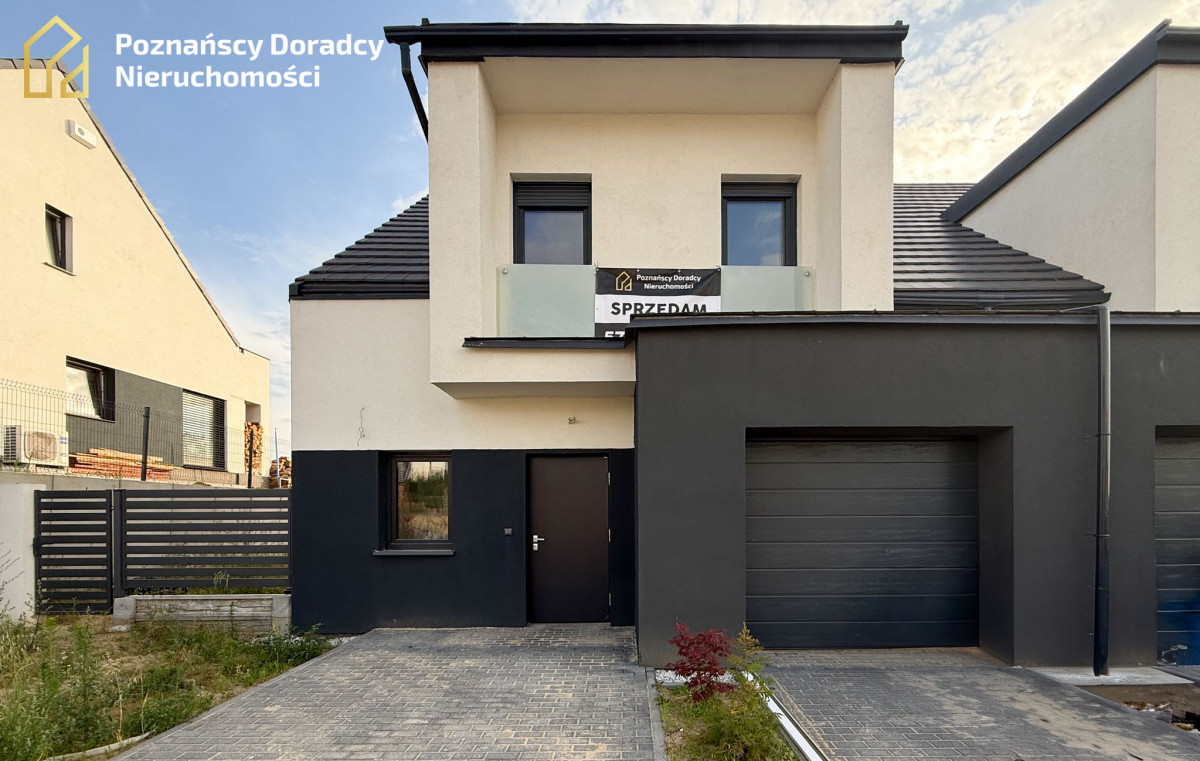Na sprzedaż przestronny dom jednorodzinny w zabudowie bliźniaczej o powierzchni całkowitej 145,19 m² (użytkowej 135,25 m²) z dodatkowym poddaszem. Nieruchomość położona jest na działce 370 m² w Gruszczynie - jedynie 2 km od Swarzędza i 7 km od Poznania.