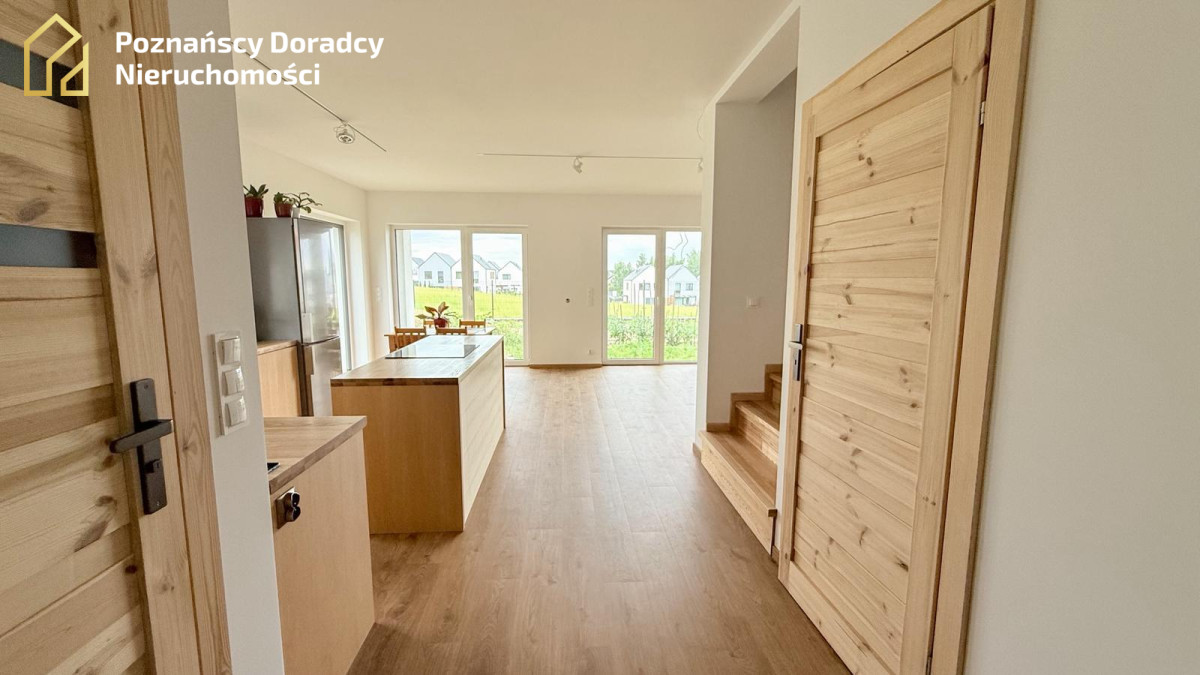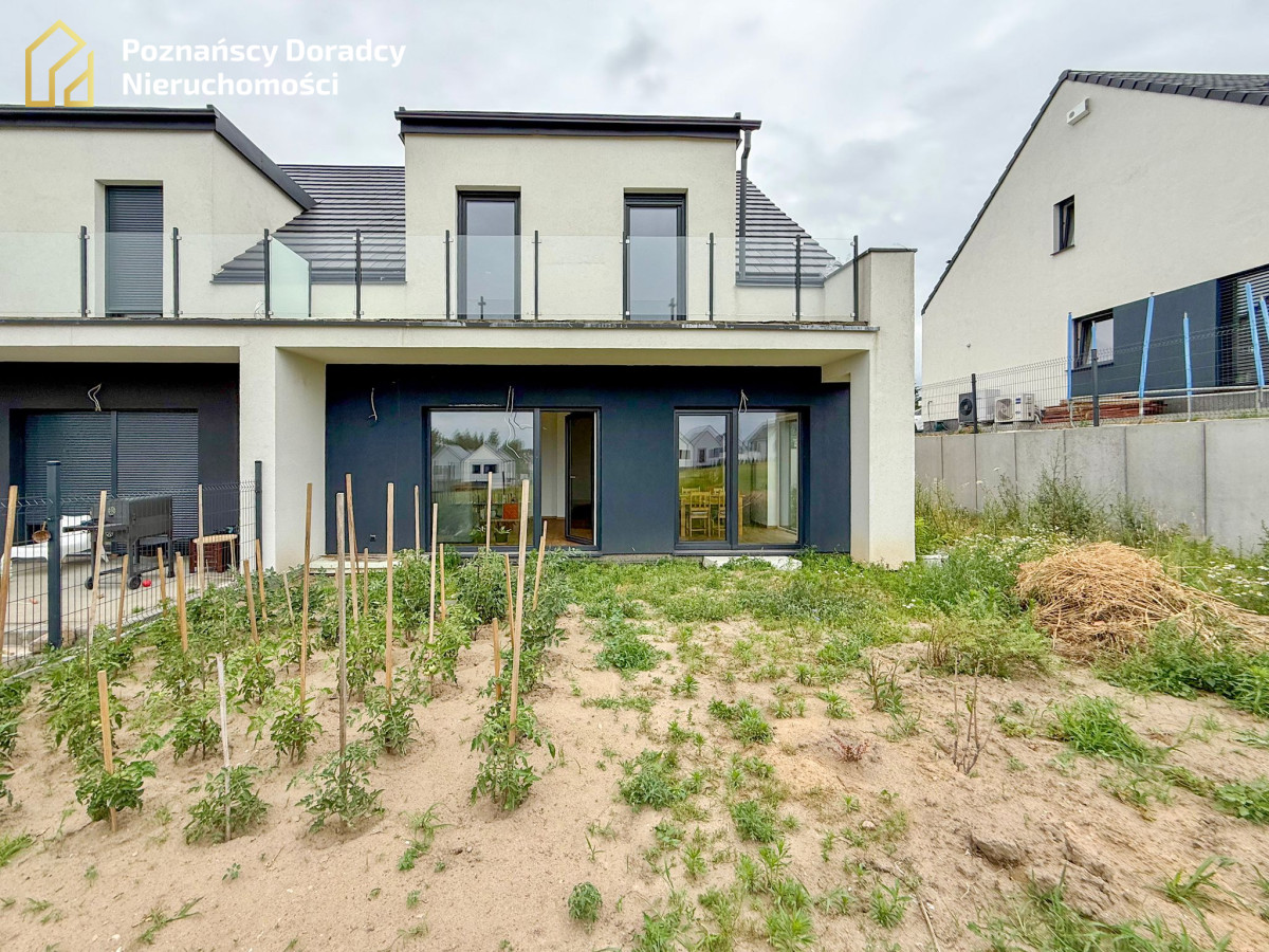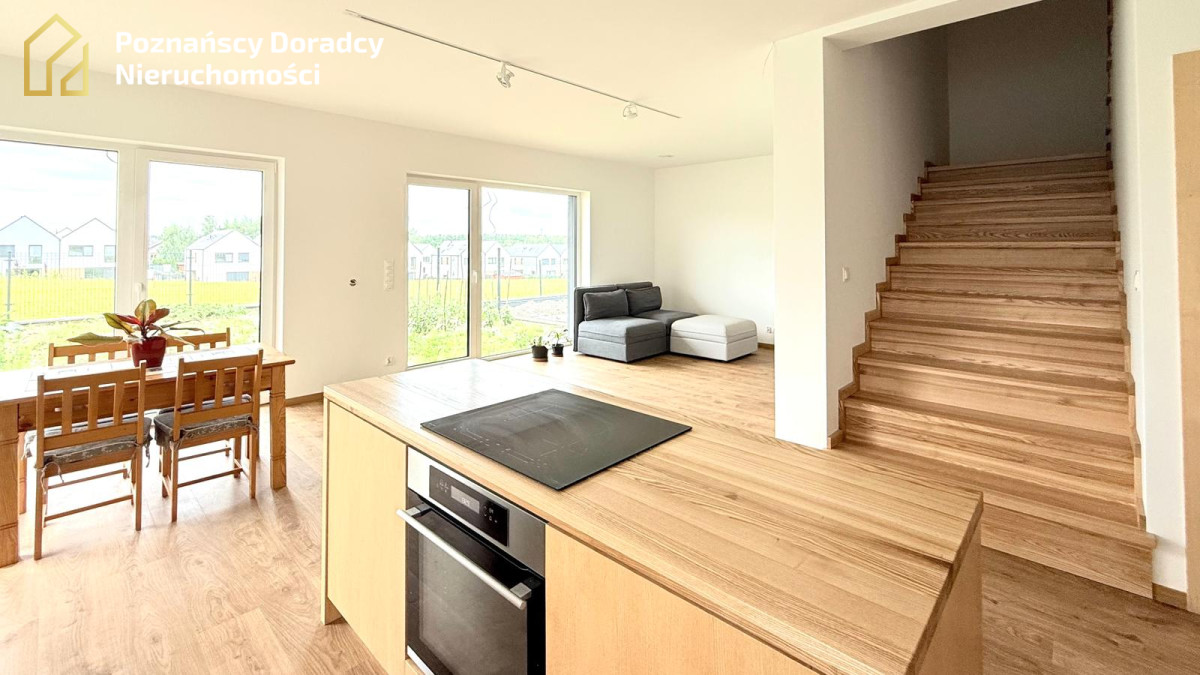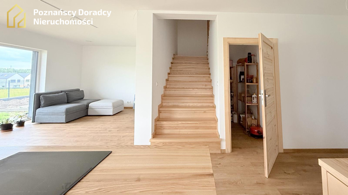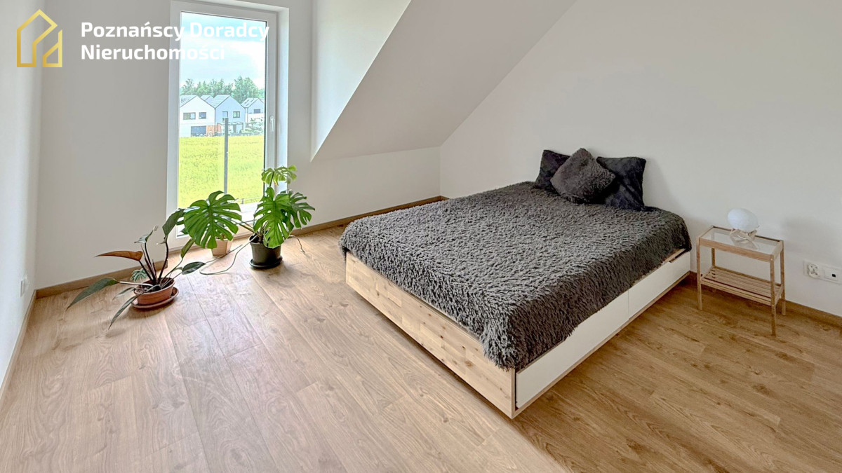 Na sprzedaż przestronny dom jednorodzinny w zabudowie bliźniaczej o powierzchni całkowitej 145,19 m² (użytkowej 135,25 m²) z dodatkowym poddaszem. Nieruchomość położona jest na działce 370 m² w Gruszczynie - jedynie 2 km od Swarzędza i 7 km od Poznania.