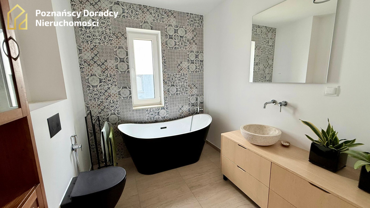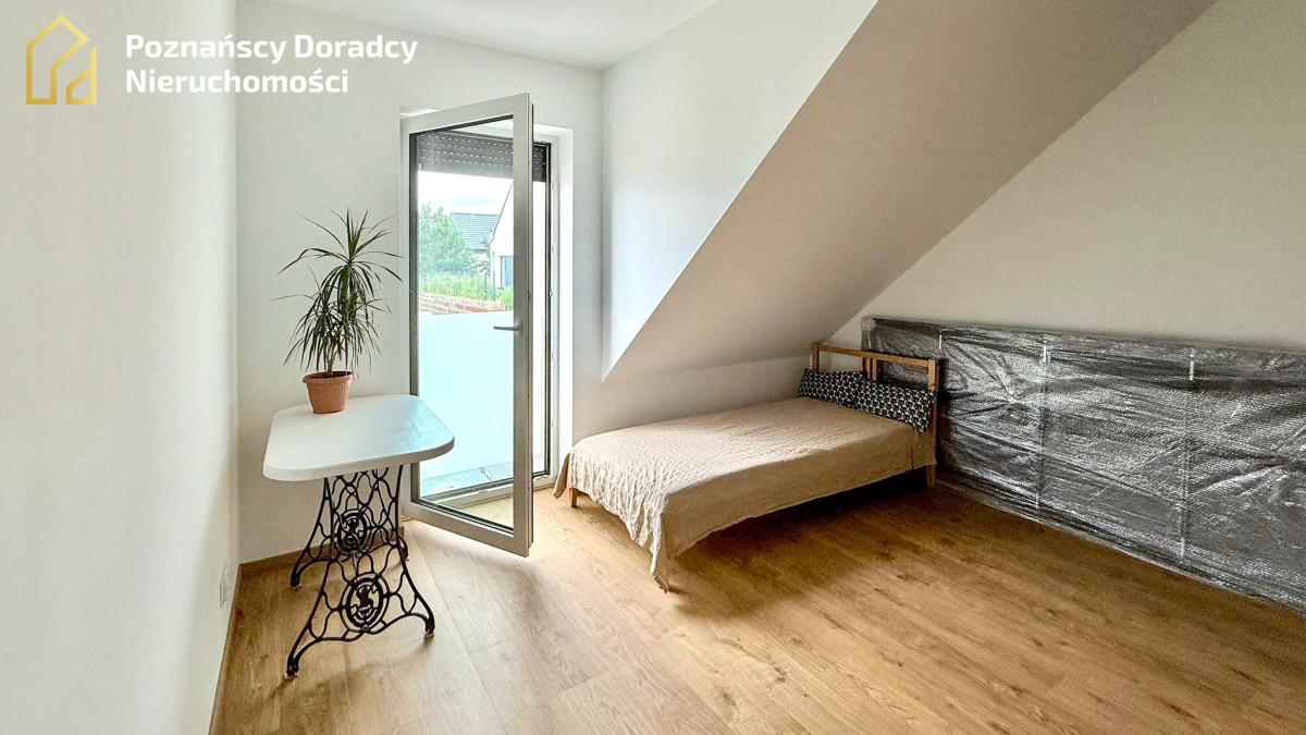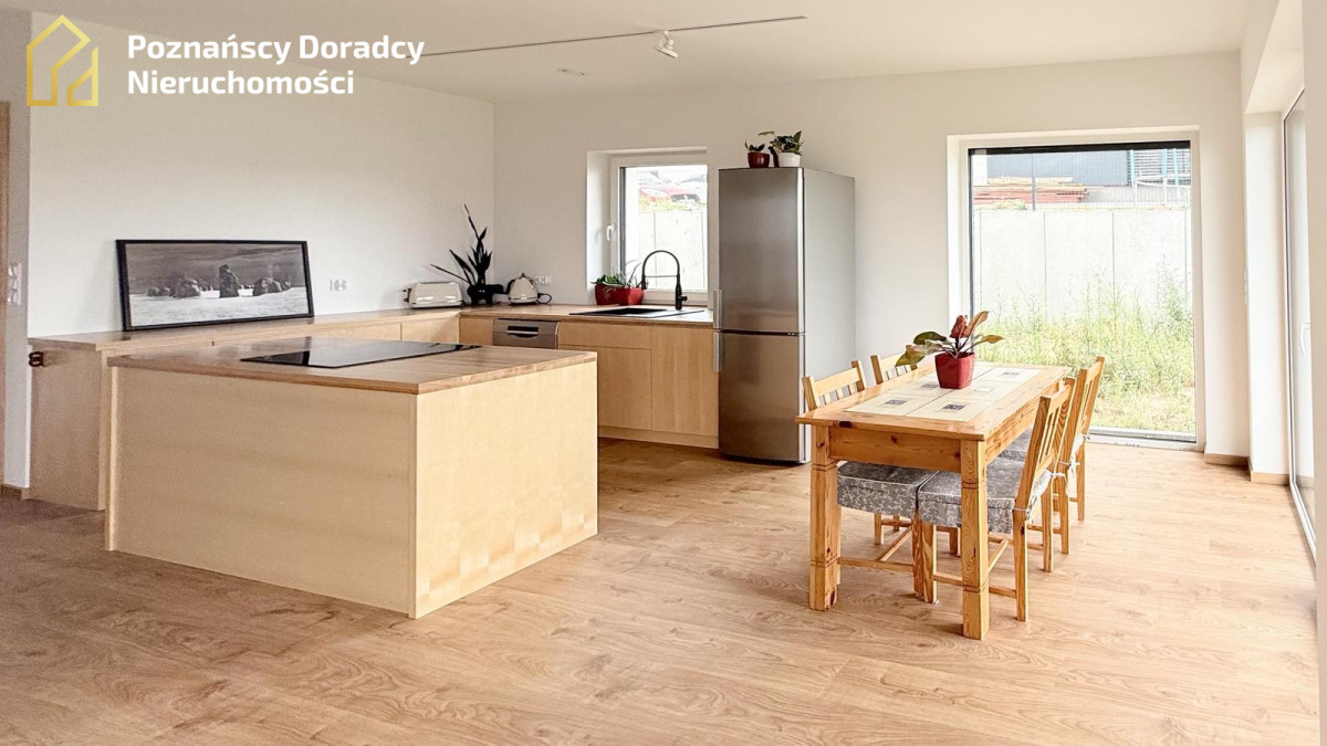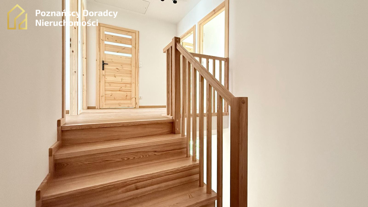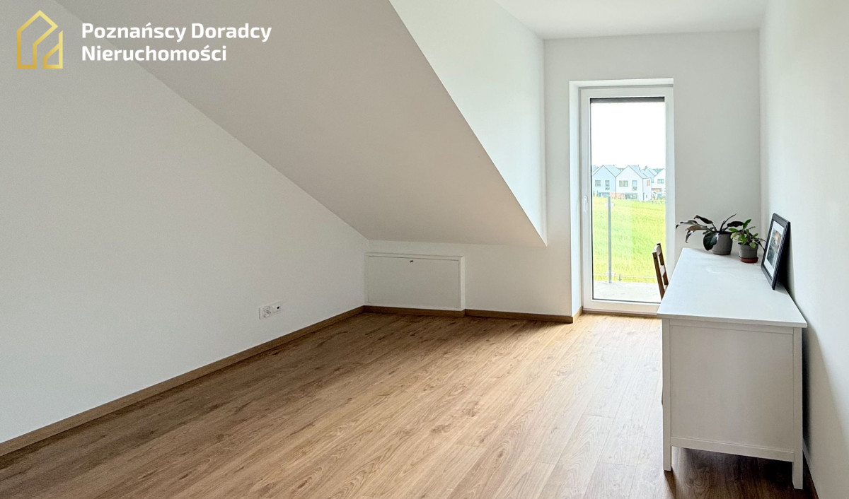 Na sprzedaż przestronny dom jednorodzinny w zabudowie bliźniaczej o powierzchni całkowitej 145,19 m² (użytkowej 135,25 m²) z dodatkowym poddaszem. Nieruchomość położona jest na działce 370 m² w Gruszczynie - jedynie 2 km od Swarzędza i 7 km od Poznania.