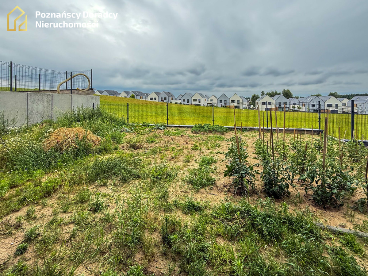 Działka została wyrównana i nawieziona humusem, posiada system drenażu skutecznie odprowadzający wodę opadową. Front przygotowano pod nasadzenia ozdobne.