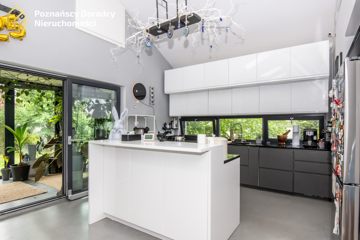 - Kuchnia: Nowoczesna kuchnia z wyspą, wyposażona w sprzęt AGD najwyższej jakości oraz funkcjonalne meble. Doskonałe miejsce do kulinarnych eksperymentów.