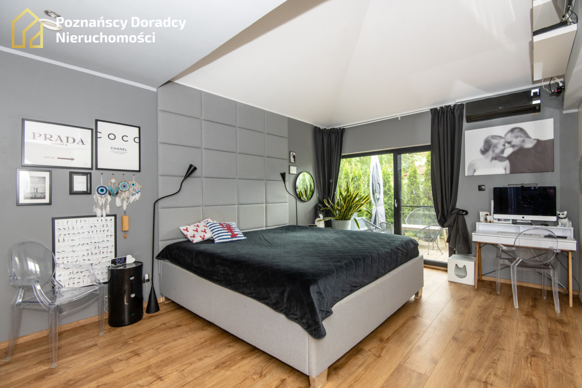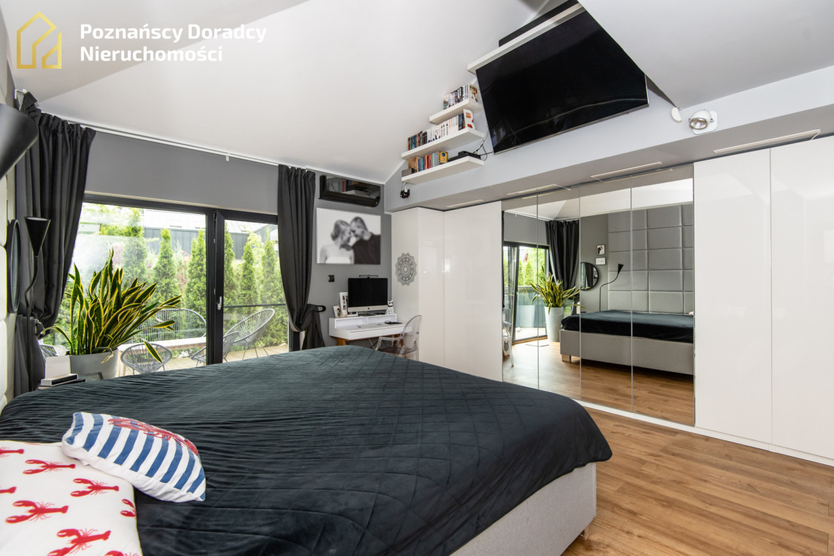 - Sypialnie: Trzy przytulne sypialnie, jedna z indywidualną garderobą oraz łazienką. Każda z sypialni ma dostęp oraz wyjście na taras, jest także doskonale izolowana akustycznie.