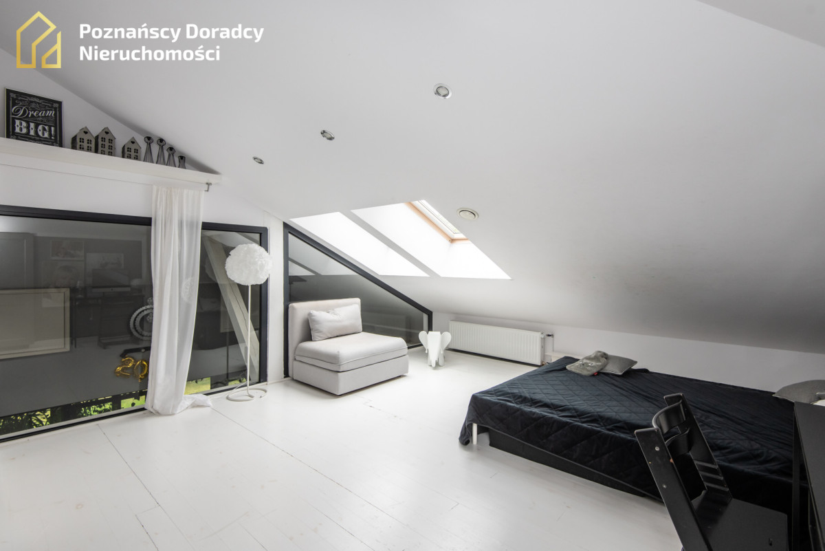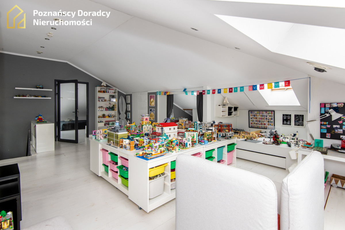 - Antresola: Osobna sypialnia oraz przestronny openspace, który aktualni właściciele wykorzystali jako bawialnia dla dzieci, aczkolwiek Ty możesz zrobić tam cokolwiek sobie wymarzysz