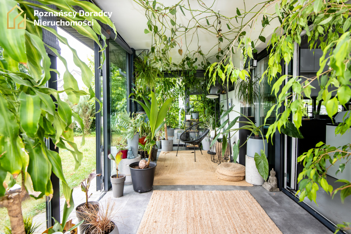 Bezapelacyjnym atutem nieruchomości jest przepięknie zaaranżowany ogród zimowy z bogatą roślinnością, który nadaje domostwu swoisty ciepły charakter.
