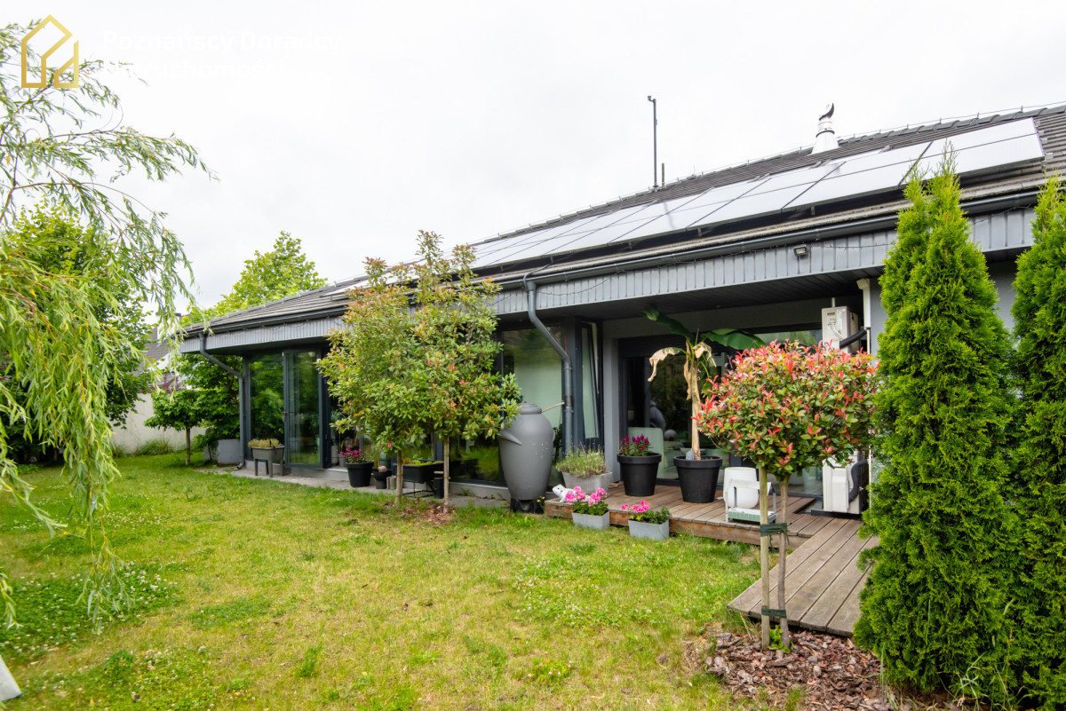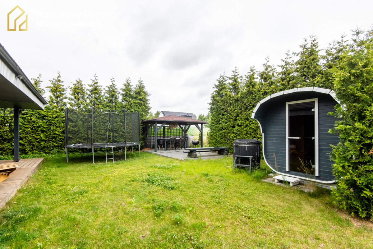 Dom otoczony jest zadbanym ogrodem z licznymi nasadzeniami drzew owocowych, krzewów ozdobnych oraz trawnikiem. Duży taras zachęca do relaksu na świeżym powietrzu. Wieczorem można zrelaksować się w wannie z hydromasażem lub jeśli wolisz w klimatycznej saunie, która schowana jest za domem.
