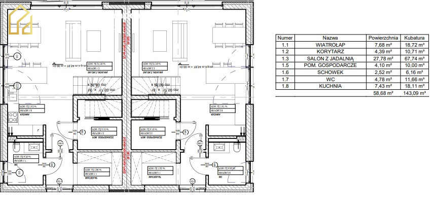 Na powierzchnię całego domu składają się: