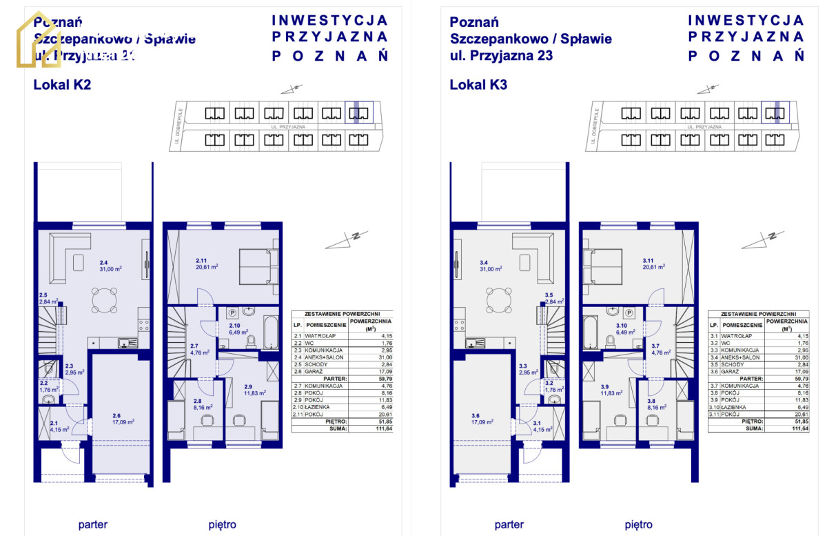 Zapraszamy do zapoznania się z ofertą nowoczesnych domów w zabudowie szeregowej w ramach inwestycji Przyjazna 2 - jednej z najbardziej atrakcyjnych propozycji mieszkaniowych na mapie Poznania!