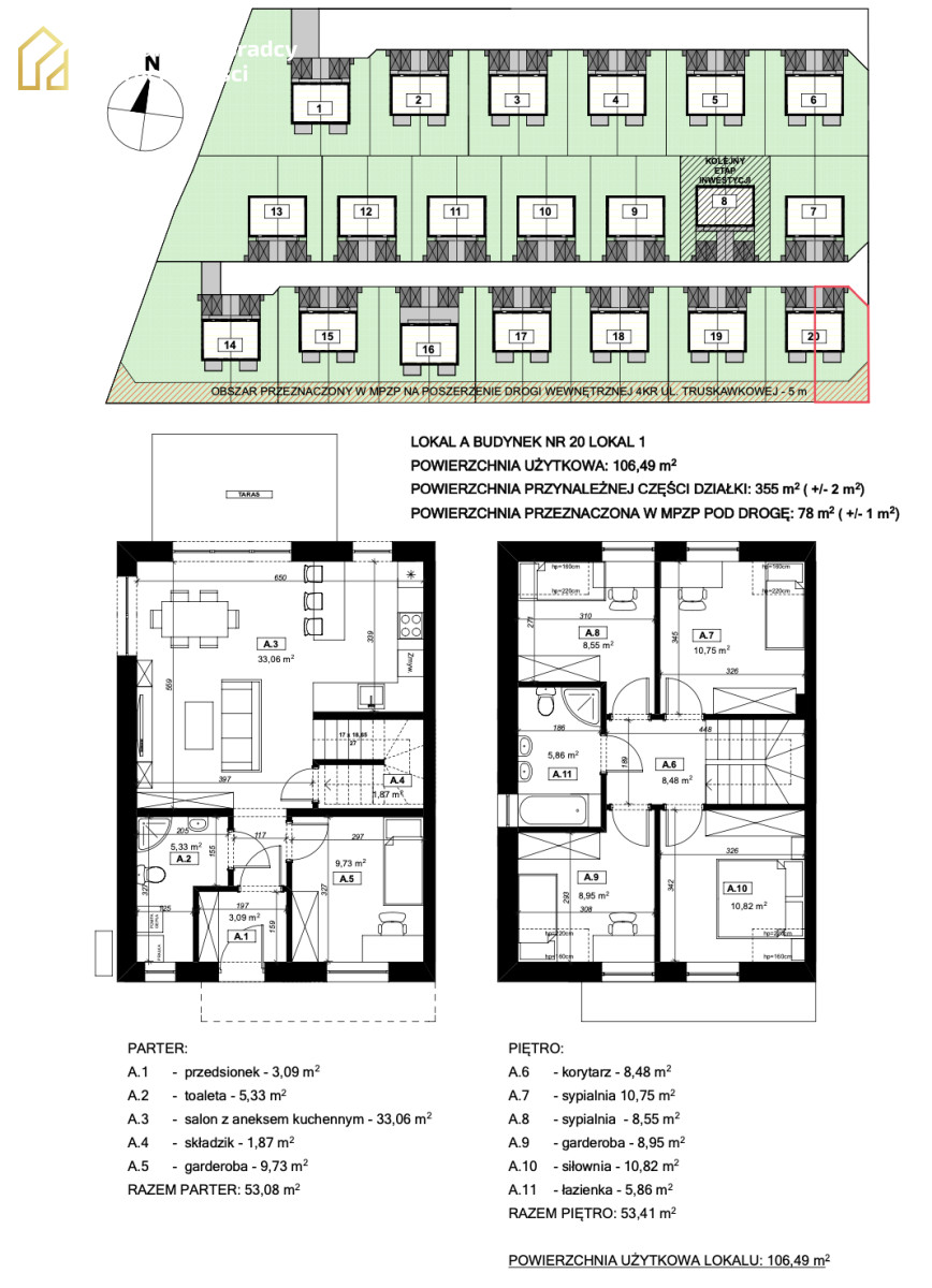 ✅ Domy wyposażone będą w media: woda, prąd, kanalizacja, światłowód. Każdy z domów posiadać będzie udział w drodze wewnętrznej.
