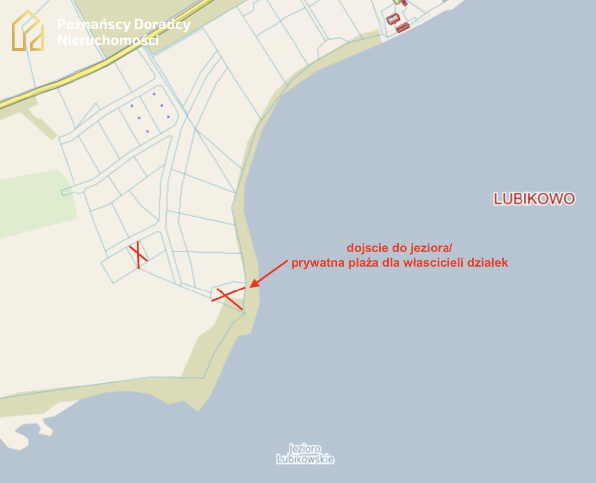 Działki położone nad brzegiem Jeziora Lubikowskiego nieopodal wsi Lubikowo ( najbliższy sklep)