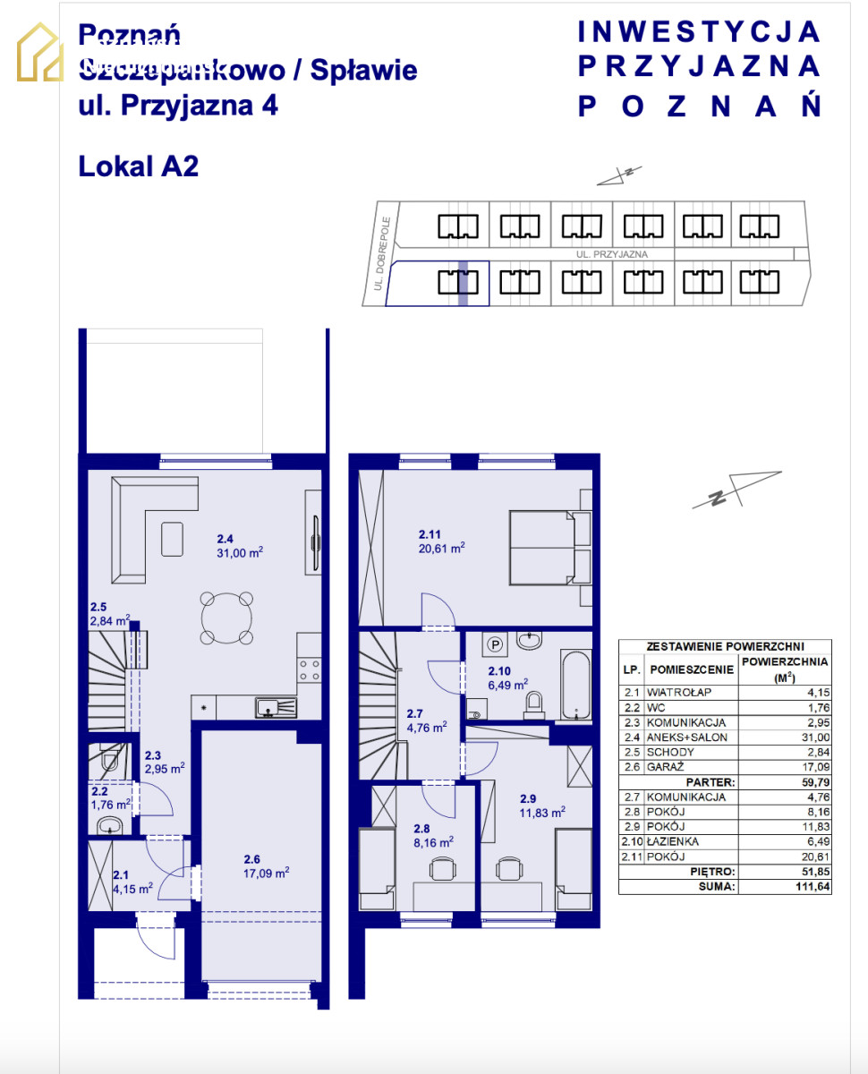 Zapraszamy do zapoznania się z ofertą nowoczesnych domów w zabudowie szeregowej w ramach inwestycji Przyjazna 2 - jednej z najbardziej atrakcyjnych propozycji mieszkaniowych na mapie Poznania!
