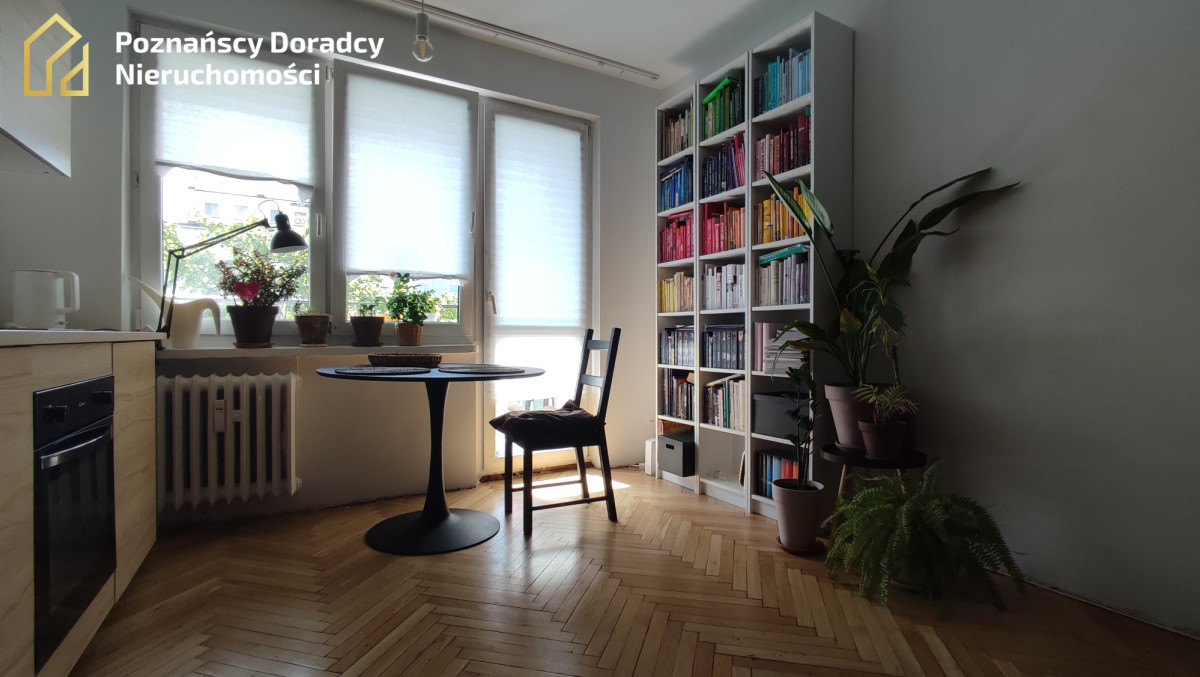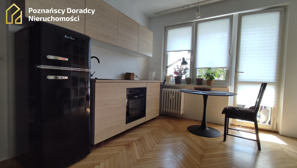 Polecam na wynajem mieszkanie o powierzchni 36 m² znajdujące się na 4. piętrze w bloku z windą przy ul. Grunwaldzkiej, nieopodal skrzyżowania z ul. Matejki ( tuz przy restauracji Trattoria Donatello ) w sąsiedztwie City Park i Parku Arena w Poznaniu. Lokal przeszedł remont w 2020 roku, co daje przyjemny standard wykończenia i nowoczesny charakter wnętrz.
